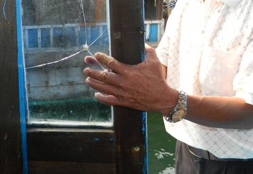 Vết đạn do "tàu mag cờ TQ" bắn vào cabin tàu cá QNa 91865.