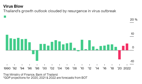 Chính phủ Thái Lan hiện đã chỉ đạo một số ngân hàng quốc doanh tăng cường cho vay với những doanh nhân và nông dân chịu ảnh hưởng từ dịch bệnh. Đồng thời Ngân hàng trung ương Thái Lan cũng cho biết những người đang vay nợ có thể đến ngân hàng để được hỗ trợ, ví dụ những hãng bán lẻ có thể hưởng chính sách giãn nợ từ nay đến cuối tháng 6/2021.