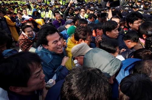 Các thân nhân đã tức giận, phát sinh đụng độ với cảnh sát trong một vụ biểu tình đòi gặp tổng thống Hàn Quốc và đề nghị đẩy mạnh công tác tìm kiếm nạn nhân mất tích, theo Reuters.