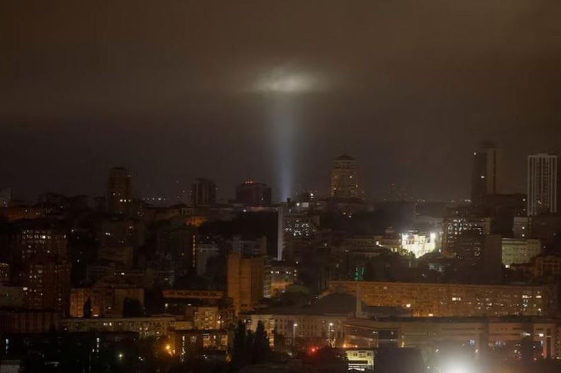 Quân nhân Ukraine sử dụng đèn pha để tìm kiếm UAV trên bầu trời thành phố Kiev trong