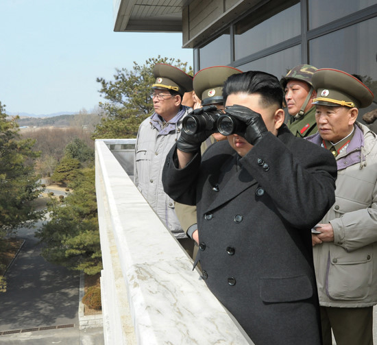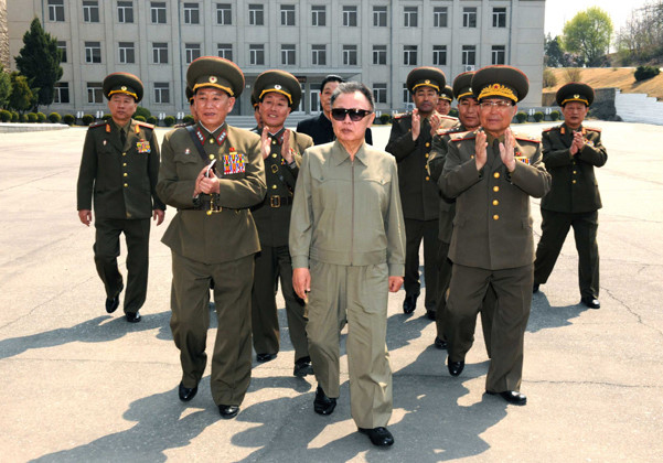 Ông Kim Yong Chol (bên trái, hàng đầu) trong một lần tháp tùng nhà lãnh đạo Kim Yong Il thăm một đơn vị quân sự. Ảnh: KCNA.