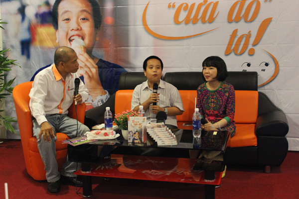 Từ trái sang: Tiến sĩ Nguyễn Mạnh Hùng (CEO Thái Hà Books), Đỗ Nhật Nam và mẹ - Phan Hồ Điệp trong buổi giao lưu giới thiệu sách