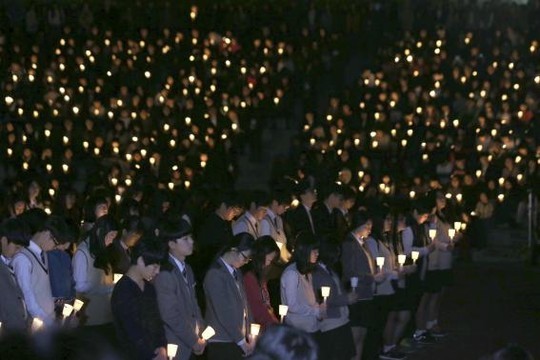 Người Hàn Quốc cầu nguyện cho các hành khách mất tích sau vụ tai nạn tàu Sewol.