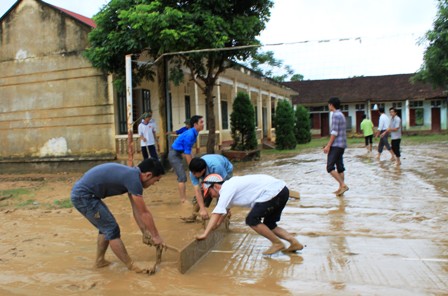 Tại huyện Thường Xuân, ngay sau khi lũ rút, chính quyền địa phương đã huy động gần 200 đoàn viên, thanh niên ở các cơ quan trên địa bàn huyện và đoàn viên thanh niên tại địa phương tình nguyện về xã Lương Sơn - nơi bị thiệt hại nặng nề nhất do mưa lũ vừa qua, giúp các nhà trường và người dân khắc phục hậu quả lũ lụt.