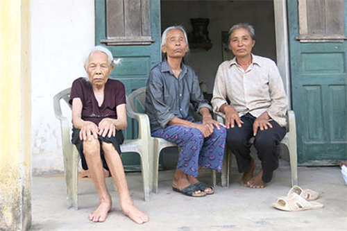 Cựu TNXP Nguyễn Thị Cúc (Vũ Thư, Thái Bình) đã hơn 30 năm mù lòa (ngồi giữa) bên mẹ già và em gái.