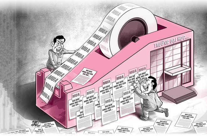 Chúng ta thấy đang có một “dây chuyền sản xuất” bao gồm các trường “mua bài” để có thành tích ảo, các NXB vụ lợi tạo ra các tạp chí dễ dãi về chất lượng để “bán bài” và các nhà khoa học tiếp tay, hưởng lợi từ những hoạt động trên.