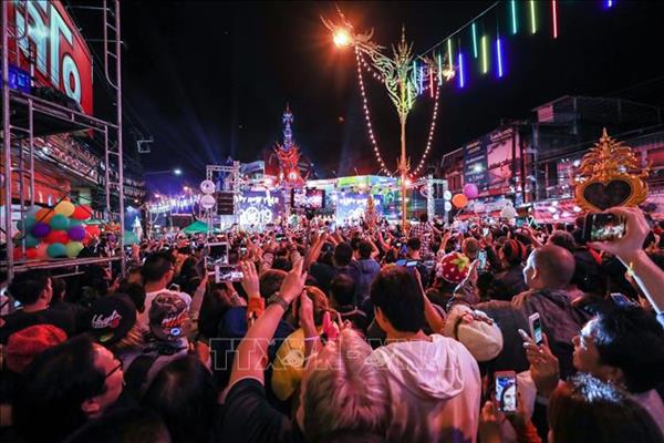 Người dân đón Năm mới tại Chiang Rai, Thái Lan đêm 31/12/2018. Ảnh: THX/TTXVN.