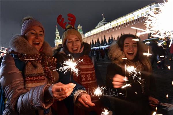 Thiếu nữ Nga đón Năm mới trên Quảng trường Đỏ ở thủ đô Moskva ngày 1/1/2019. Ảnh: AFP/TTXVN.