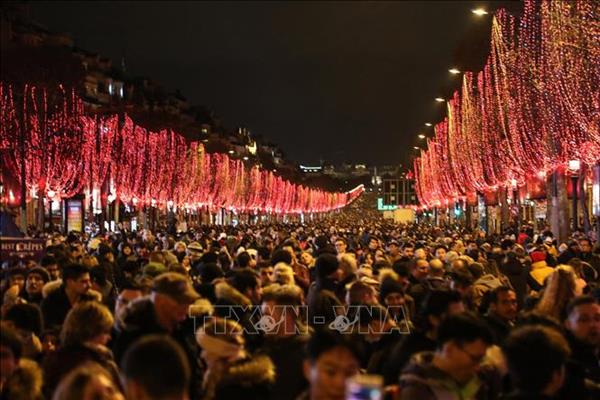 Bất chấp căng thẳng và xung đột liên quan đến Phong trào "Áo vàng", đại lộ Champs-Elysees vẫn được trang hoàng rực rỡ và người dân Paris đổ xuống đường phố chờ đón thời khắc Giao thừa, bước sang Năm mới, đêm 31/12/2018. Ảnh: AFP/TTXVN.