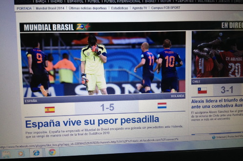 Báo thể thao Mundo Deportivo có bài bình luận với giọng đầy châm biếm: "Hà Lan đã biến Tây Ban Nha thành trò cười. Thất bại này là một thảm họa của Tây Ban Nha". Tờ báo thể thao Super Deporte có lượng phát hành xếp thứ 5 ở Tây Ban Nha nhận định: "Hà Lan đã làm nhục Tây Ban Nha. Màn trình diễn nghèo nàn của Casillas và lối chơi tuyệt vời của Hà Lan đã mang đến đêm ác mộng cho nhà vô địch thế giới".