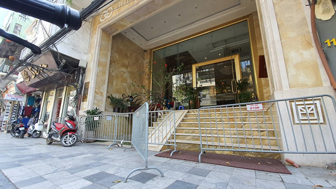 Cổng vào khách sạn Golden Sillk tại Hàng Gai đã bị rào lại. Ảnh Lê Quân