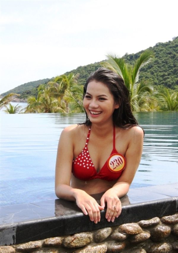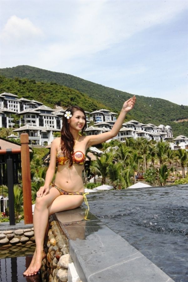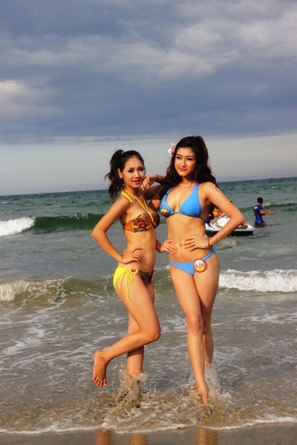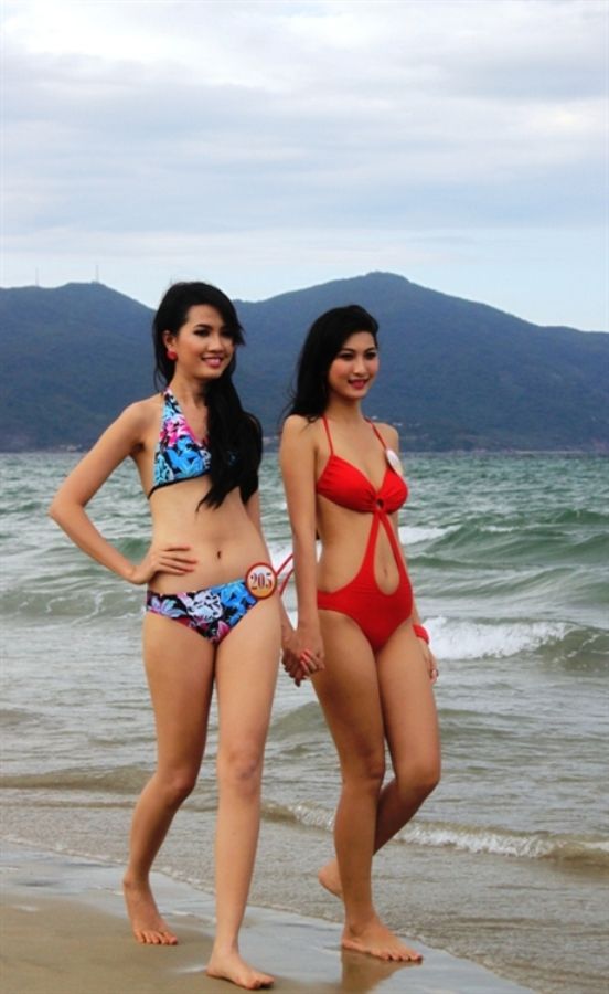Thí sinh khoe sắc bên biển Đà Nẵng.