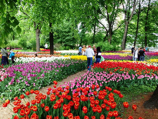 Cách không xa khu nhà kính là vương quốc hoa cảnh: vô số loại mẫu đơn, mã lan tử, hoa rẻ quạt, hoa chuông, thủy tiên và huệ tây cùng loa kèn. Không phải tất cả các loài hoa đều ưa ánh nắng mặt trời, một số quen ẩn trong bóng râm. Dành cho những giống hoa trầm mặc này đã tạo ra cả khu “vườn rợp” đặc biệt, nơi tia nắng mặt trời không xuyên tới.
