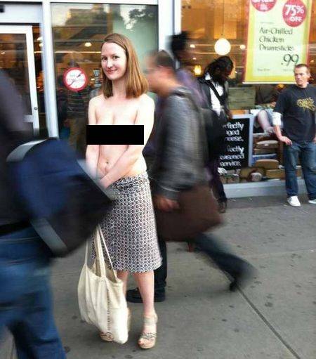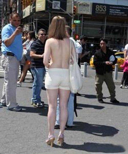 Vài tuần trở lại đây, người dân sống tại thành phố New York đã có dịp “mắt tròn mắt dẹp” trước sự xuất hiện của một cô gái trong trạng thái bán khỏa thân, với  phần trên hoàn toàn không mặc gì, đi lại giữa đường phố mà không hề để ý đến những ánh mắt đang nhìn mình.