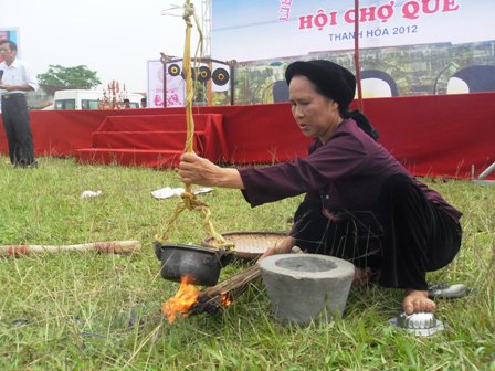 Trò diễn nấu cơm của đoàn Tĩnh Gia.