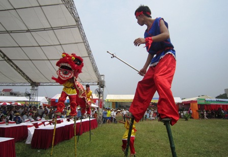 Trò múa lân trên Cà Kheo của đoàn thị xã Sầm Sơn.