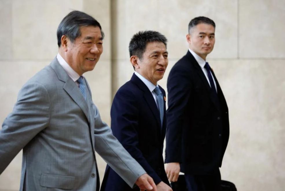 Phó Thủ tướng Trung Quốc He Lifeng (trái) và Thứ trưởng Bộ Thương mại Trung Quốc Li Chenggang (giữa) tham gia cuộc họp với phái đoàn thương mại Mỹ tại Malaysia ngày 25/10.