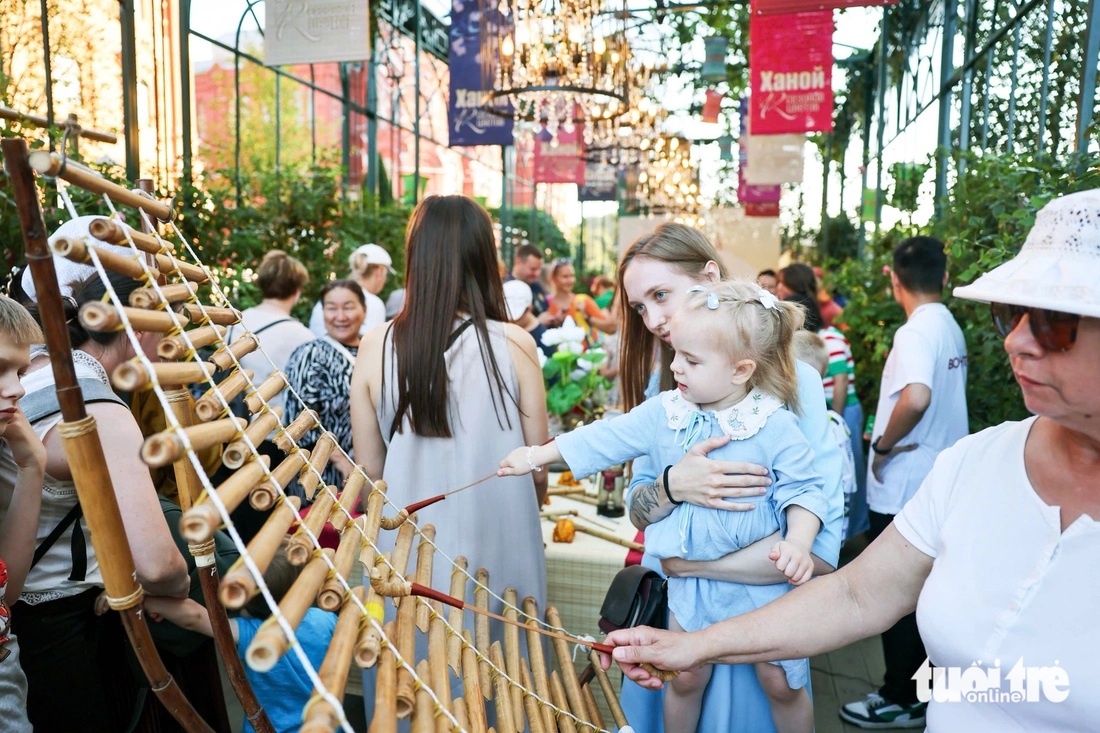 Khu trưng bày và trải nghiệm nhạc cụ truyền thống Việt Nam thu hút đông đảo các "nghệ sĩ nhí" của nước Nga - Ảnh: NGUYỄN KHÁNH