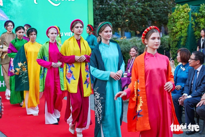 Người mẫu Nga trình diễn áo dài của nhà thiết kế Vũ Việt Hà - Ảnh: NGUYỄN KHÁNH.