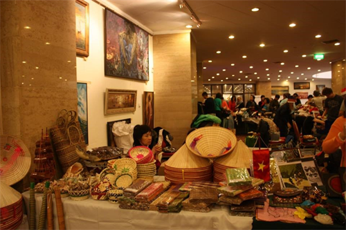 4- Hai Công ty đã hỗ trợ và đăng ký quầy hàng giới thiệu sản phẩm mỹ nghệ của Việt Nam tại Hội chợ là Công ty Barotex của chị Trung Chính và Công ty gia đình ông bà Vân - Ba, Hải Phòng. Hai quầy đã tham gia đóng đóng tiền quầy và tiền từ thiện cùng ĐSQ theo qui định hội chợ.