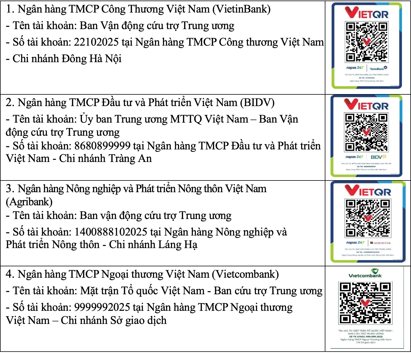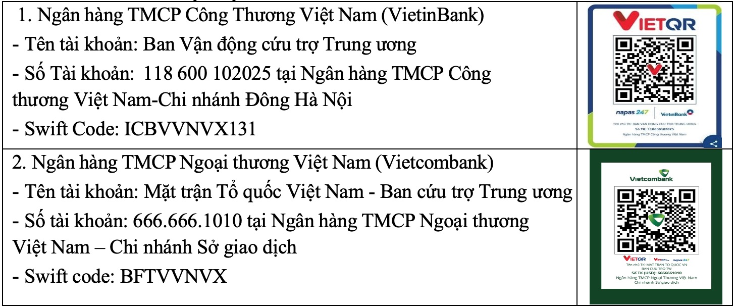 Thông tin tiếp nhận ủng hộ liên hệ qua các kênh sau: