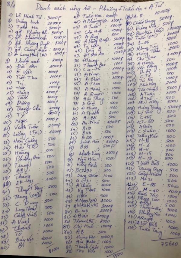 Danh sách quyên góp: