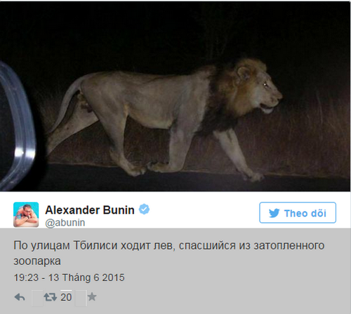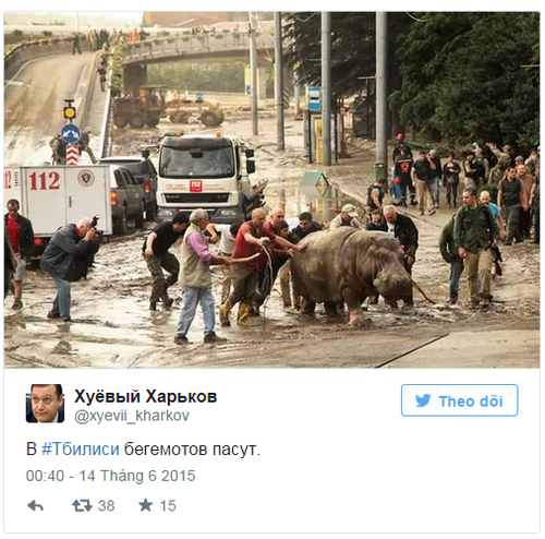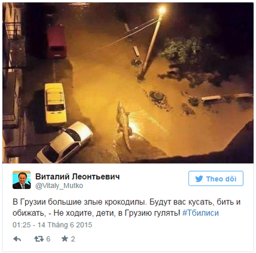 Người sử dụng mạng xã hội đăng tải hình ảnh của những con vật đào tẩu khỏi Sở thú Tbilisi. Mưa lớn nhiều giờ ở thủ đô Gruzia đã dẫn đến cảnh ngập lụt tại một số khu vực trong thành phố. Sân bãi, hầm nhà và cả tầng trệt của hàng trăm ngôi nhà, lối đi ngầm và quảng trường ngập nước.
