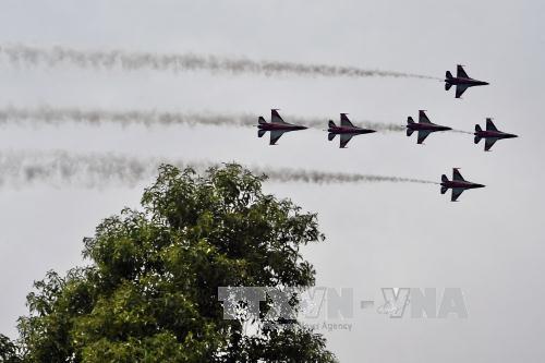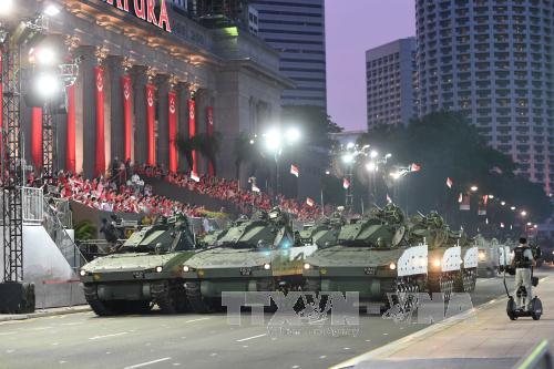 Lễ diễu binh kỷ niệm 50 năm Ngày Quốc khánh Singapore. Ảnh: AFP/TTXVN