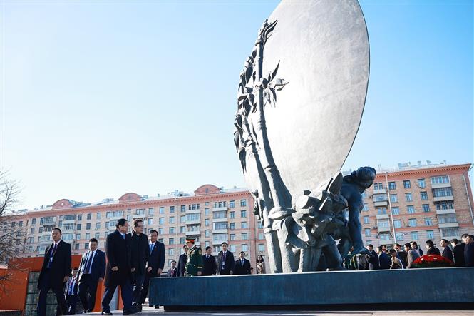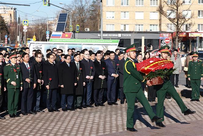 Nhân chuyến thăm chính thức Liên bang Nga, sáng 23/3/2026, giờ địa phương, Thủ tướng Phạm Minh Chính và đoàn đại biểu cấp cao Việt Nam đến dâng hoa tại Tượng đài Chủ tịch Hồ Chí Minh (Quảng trường Hồ Chí Minh) ở Thủ đô Moscow, Liên bang Nga.