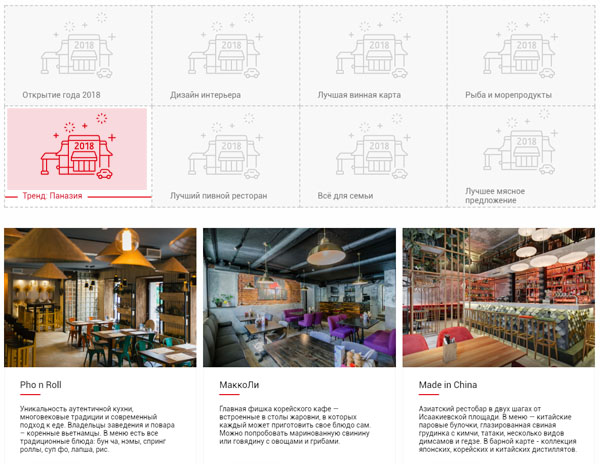 Cuộc bầu chọn lần này mang tên: Giải thưởng nhà hàng 2018 (Ресторанная преми), gồm nhiều hạng mục khác nhau, như Nhà hàng bia tốt nhất, Nhà hàng có view đẹp nhất, Bar của năm, Dự án thu nhỏ tốt nhất,… được tổ chức nhằm tổng kết các hoạt động kinh doanh trong năm 2018 của các nhà hàng tại St.Petersburg.