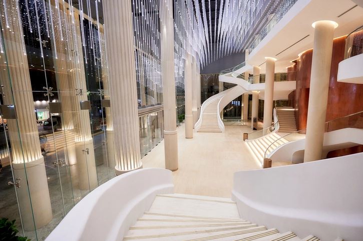 Không gian biểu diễn bao phủ bởi vẻ lộng lẫy hoàng gia, kết hợp cùng ánh sáng tinh xảo, tạo nên không khí trang nghiêm mà vẫn tràn đầy cảm xúc nghệ thuật quyền quý.