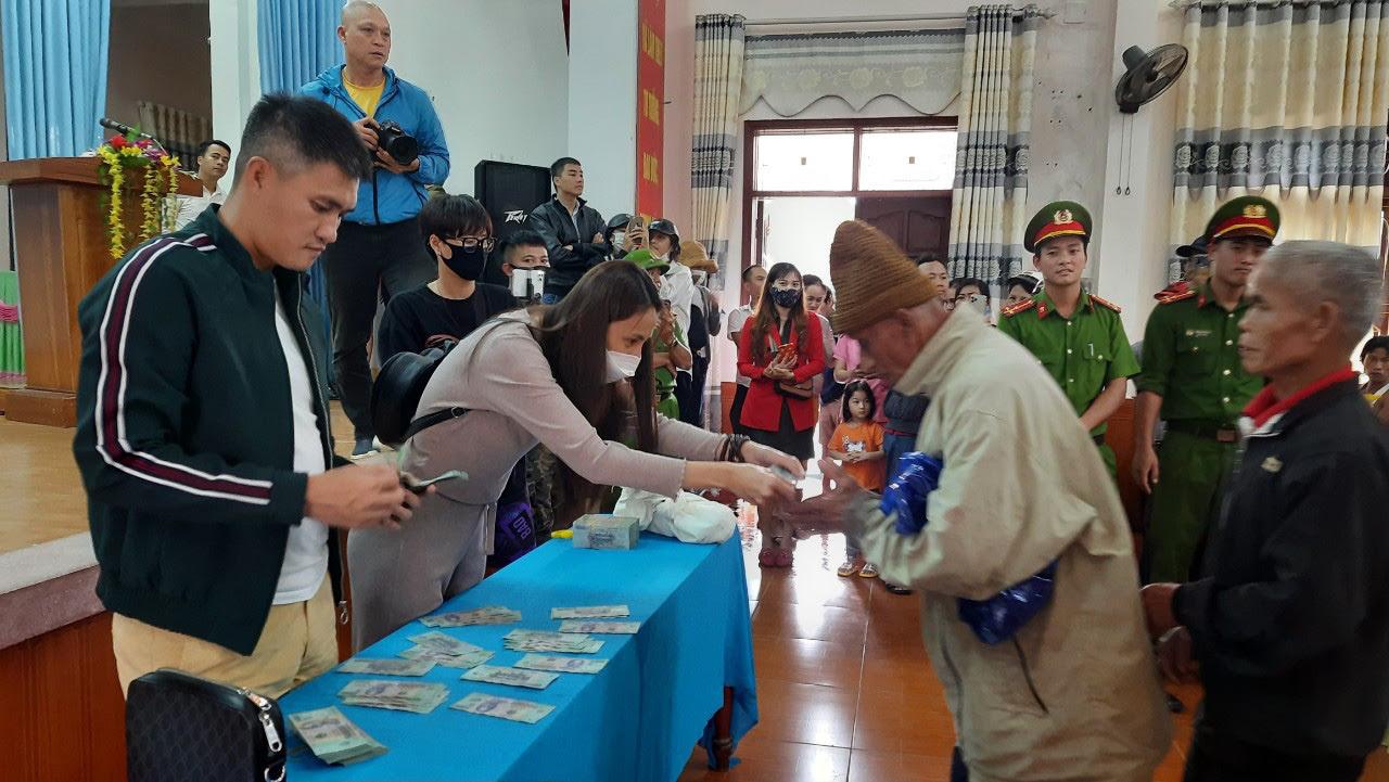 Ca sĩ Thủy Tiên tặng tiền từ thiện tại Quảng Trị hồi năm 2020. Ảnh: THANH LỘC