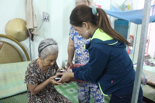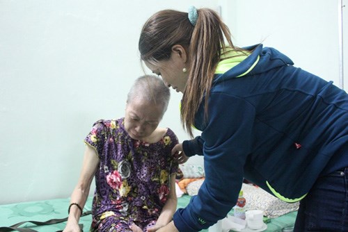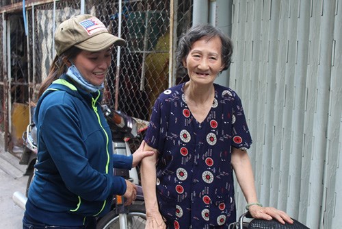 Bà cụ hiền từ đón nhận tình cảm của chị Hồng - Ảnh: Ngọc Lê