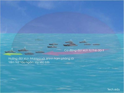 Vị trí khinh hạm tên lửa Molniya trong đội hình tác chiến.