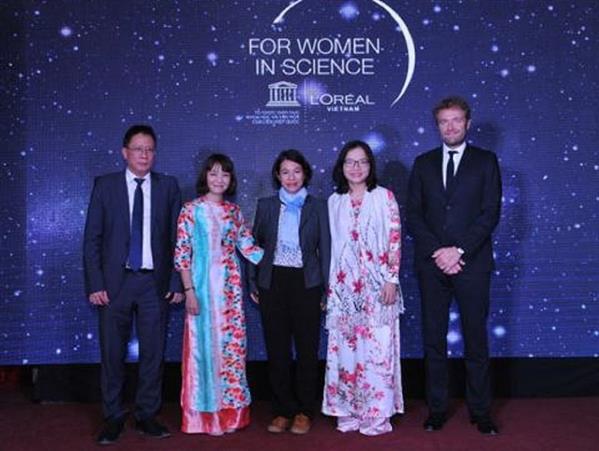 TS. Trần Phương Thảo ( thứ 4 từ trái qua) được nhận Giải thưởng nhà khoa học trẻ tài năng dành cho phụ nữ của L’Oreal - UNESCO.