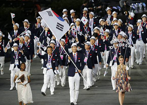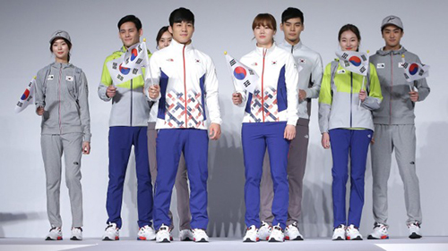 Với áo khoác hải quân, quần trắng, tất sọc, Olympic Hàn Quốc đã sẵn sàng để tham gia Thế vận hội mùa hè 2016. Đây là các thiết kế nội địa của Hàn Quốc, với áo vest thư sinh như hình ảnh nam thanh nữ tú trong các bộ phim.