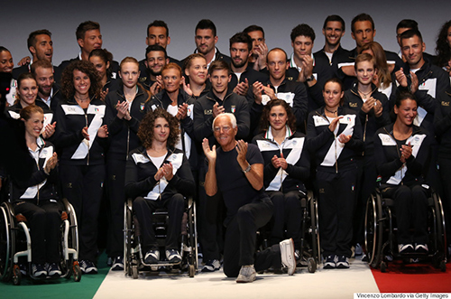 NTK Giorgio Armani bên các vận động viên mặc những thiết kế mới nhất cho Olympic 2016.