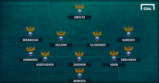 Đội hình dự kiến của ĐT Nga.
