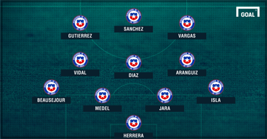 Đội hình dự kiến của ĐT Chile.