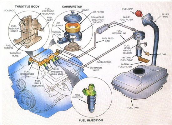 Hệ thống nạp nhiên liệu có nhiệm vụ cung cấp hỗn hợp nhiên liệu bao gồm xăng/dầu và không khí vào xilanh. Hệ thống nhiên liệu được chia thành 3 loại: Chế hòa khí, phun nhiên liệu gián tiếp và phun nhiên liệu trực tiếp. Các động cơ ô tô và xe máy trước đây thường sử dụng bộ chế hòa khí để trộn hỗn hợp nhiên liệu và không khí, do cấu tạo đơn giản, nhỏ gọn và giá thành rẻ.