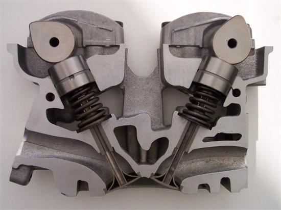 Van xả và hút đóng mở đúng thời điểm để cung cấp nhiên liệu cũng như giúp khí thải thoát ra. Trong kỳ nén và đốt thì các van này được đóng kín. Các van này hoạt động nhờ hệ thống trục cam có cấu tạo như hình dưới.