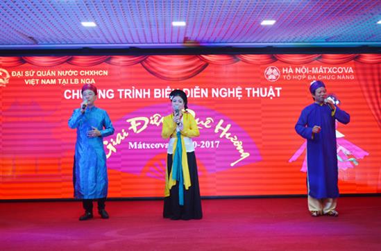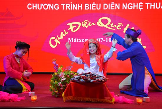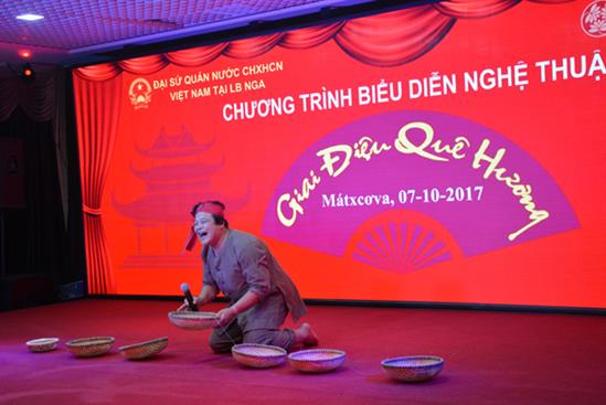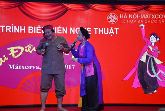 Nhân kỷ niệm 87 năm ngày Phụ nữ Việt Nam, tối 7/10, tại Tổ hợp đa chức năng Hà Nội – Moskva (Incentra), tập thể nghệ sỹ Nhà hát Chèo và Cải lương tỉnh Thái Bình đã có buổi biểu diễn phục vụ bà con cộng đồng người Việt Nam đang sinh sống, học tập và làm việc tại LB Nga.