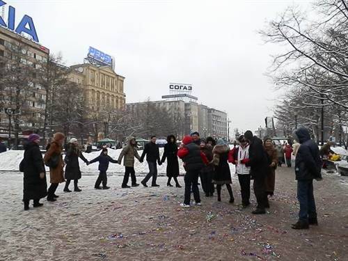 Người dân múa nối vòng ngay trên đường phố
