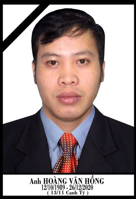 Chồng, cha, con, người Đồng hương của chúng tôi là anh Hoàng Văn Hồng sinh ngày 12/10/1989, nơi sinh: xóm Quyết Thành, xã Diễn Bích, huyện Diễn Châu, tỉnh Nghệ An. Do lâm bệnh hiểm nghèo, mặc dù đã được các bác sĩ người Nga thuộc bệnh viện Trung tâm thành phố Pskov tận tình cứu chữa nhưng anh đã từ trần vào hồi 03:30 ngày 26/12/2020 (tức ngày 13/11 năm Canh Tý), hưởng dương 32 tuổi.