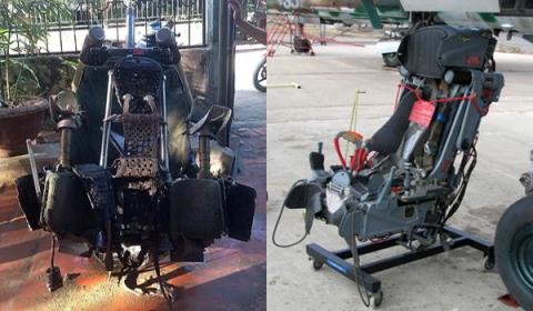 Chiếc ghế ngư dân thanh Hóa vớt được (bên trái) và ghế K-36DM được trang bị trên nhiều dòng chiến đấu cơ hiện nay.
