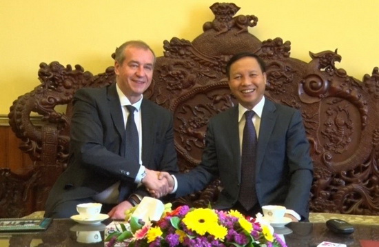 Đại sứ Ngô Đức Mạnh (phải) tiếp ông S. Levchenko - Thống đốc tỉnh Irkutsk