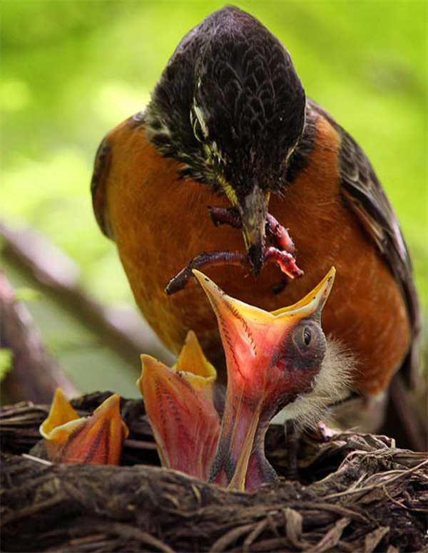 Chim cổ đỏ cho đàn con mới sinh ăn tại St Louis, Missouri, Mỹ.