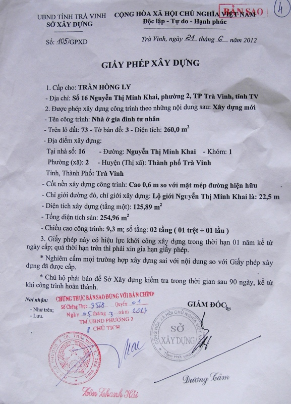 Và giấy phép xây dựng ngôi nhà số 16 Nguyễn Thị Minh Khai được sở xây dựng cấp phép.
