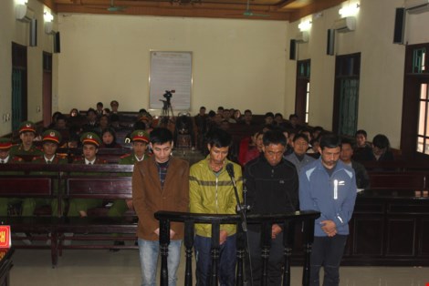 Bốn bị cáo đứng trước vành móng ngựa nghe tòa tuyên án.