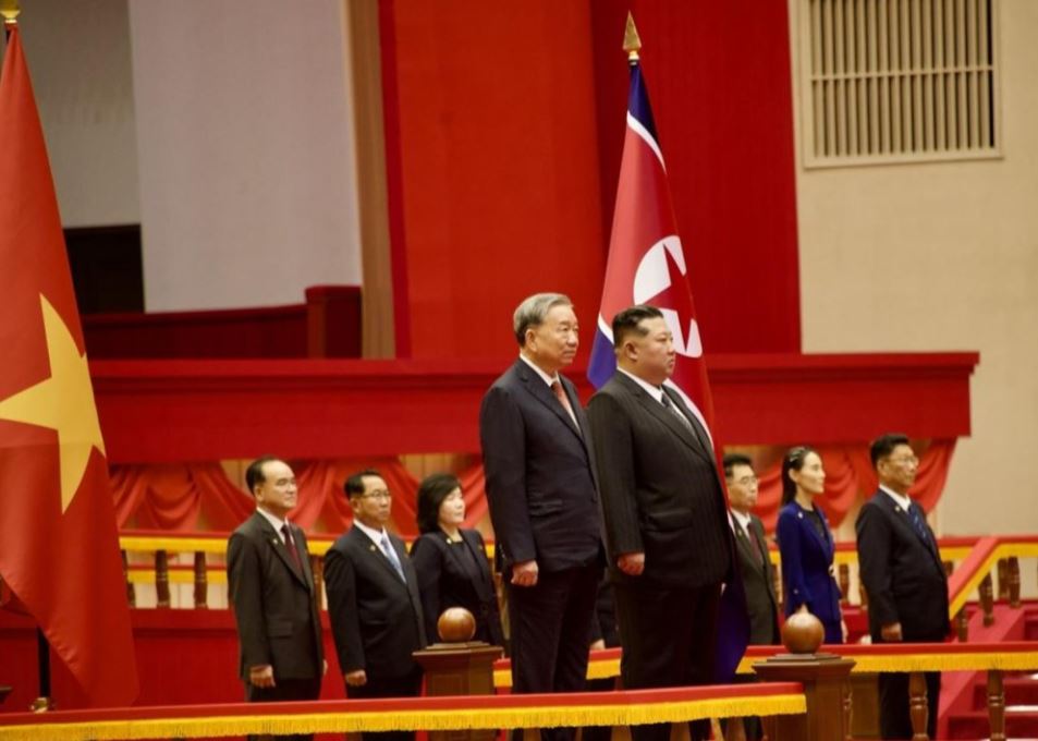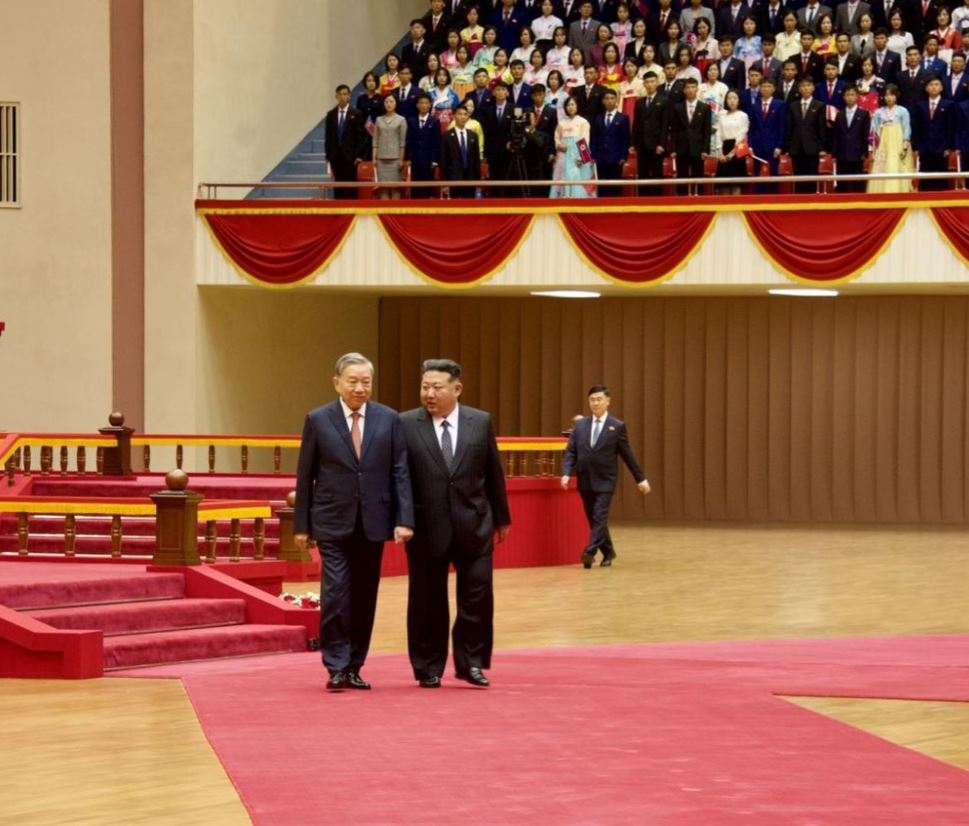 Sáng 9/10 (theo giờ địa phương ) tại Cung Thể thao ở Thủ đô Bình Nhưỡng, Tổng Bí thư Đảng Lao động Triều Tiên, Chủ tịch Quốc vụ nước CHDCND Triều Tiên Kim Jong Un chủ trì lễ đón trọng thể Tổng Bí thư Tô Lâm và Đoàn đại biểu cấp cao nước ta sang thăm cấp Nhà nước tới Triều Tiên.